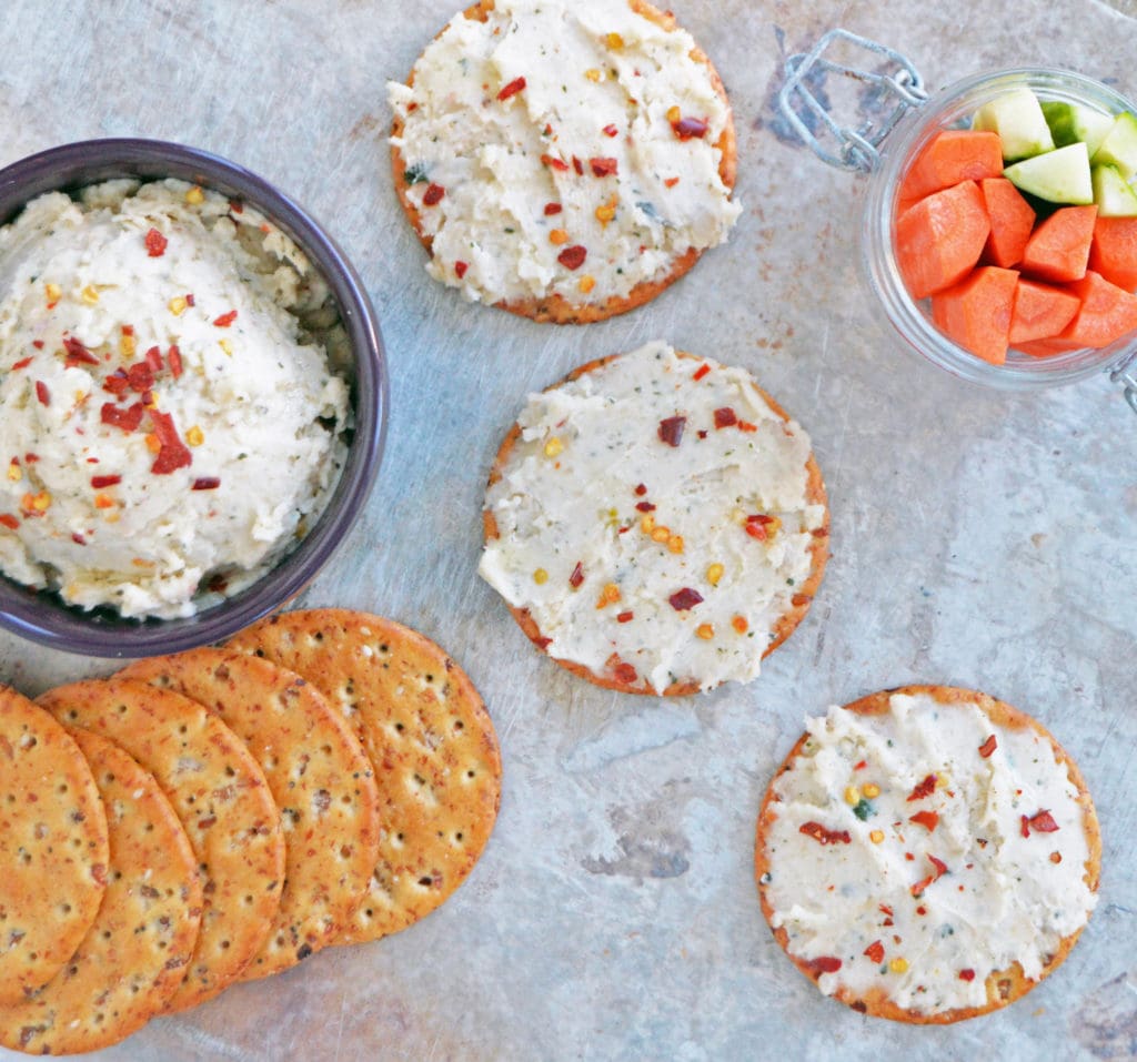 Canned beans make the perfect base for a hearty and protein packed dip that has no added sugar. Mix beans with olive oil, garlic and lemon juice in a food processor and blend until smooth. Try this recipe for Spicy White Bean Dip!