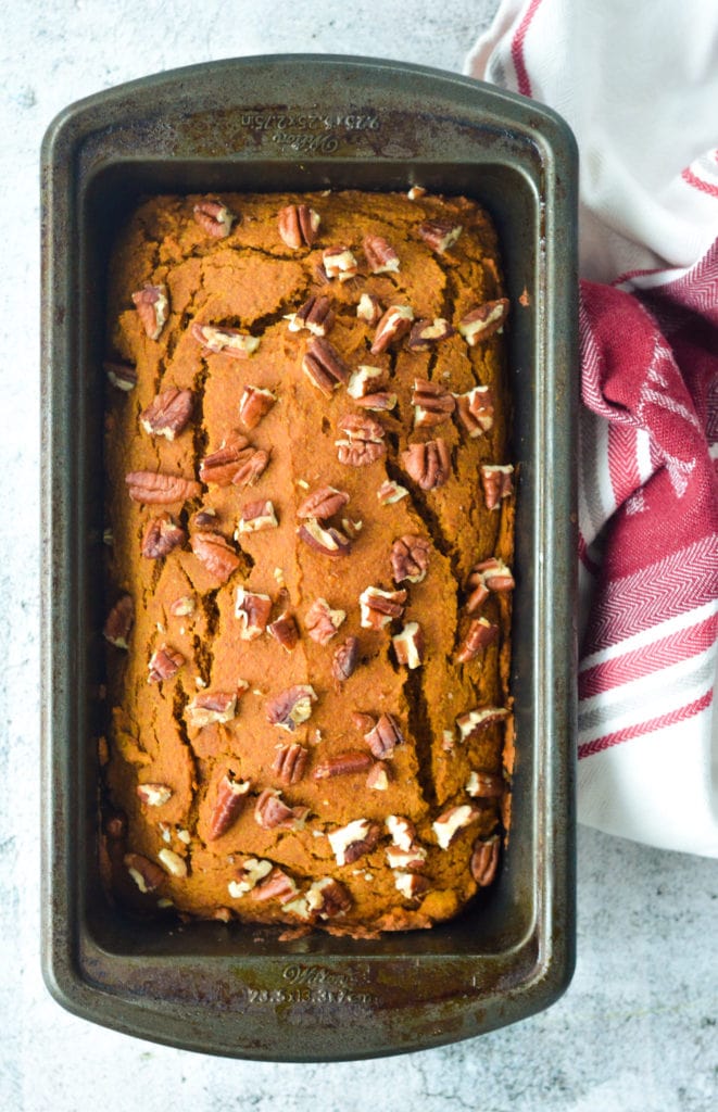 There’s nothing I love more than a pumpkin bread around the holidays. But since it’s just my husband and I splitting the bread, making an entire bread with loads of butter and sugar isn’t the healthiest option.