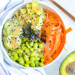 The combination of protein, healthy fat and fiber make this bowl something that will keep you full for hours. As a matter of fact, this Vegan Sushi Bowl is one of my go-to post-workout recovery meals. The combination of quinoa and edamame provides a double whammy of protein to tired muscles.