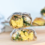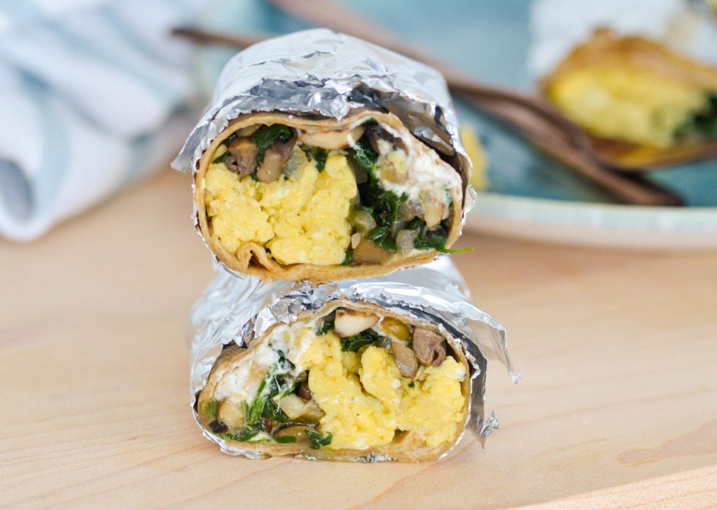 The key to preparing these freezer burritos is thinking ahead. I know that’s not always easy with your crazy schedule, but believe me when I say it’s worth it. Add some crimini mushrooms, eggs, spinach, whole wheat tortillas and goat cheese to your shopping list, and make a few of these on a weekend afternoon.