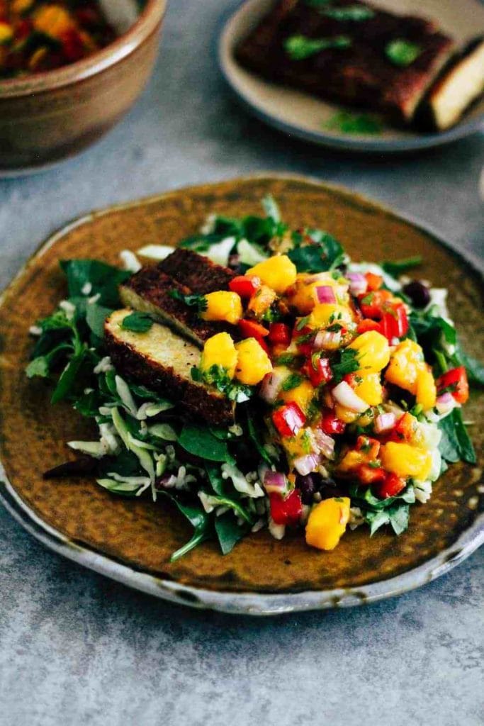 10. Jerk Tempeh Salad with Mango Salsa by Grateful Grazer
