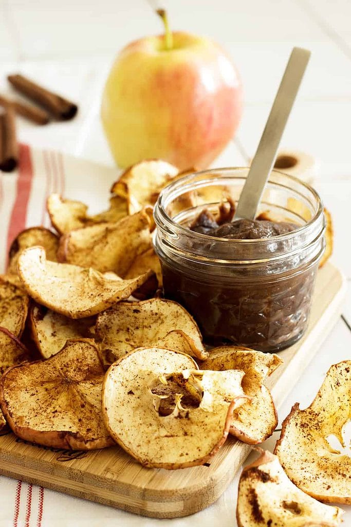 12. Perfect Air Fryer Apple Chips (with chocolate dip) | Craving Something Healthy