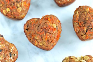 First, here’s a little known secret about muffins. Most muffin recipes are pretty similar to cupcakes. Full of sugar and butter, the only difference between most muffins and cupcakes is the omission of icing. But I’m happy to say that’s not the case when I make muffins. I use whole grain ingredients, keep the sugar to a minimum and add some fruits of veggies into the mix (have you tried my pumpkin muffins yet?).