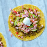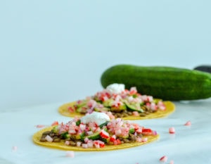 - Assemble the tacos. To the tortilla add a scoop of lentils and zucchini and top with radish salsa and Greek yogurt (if you're using).